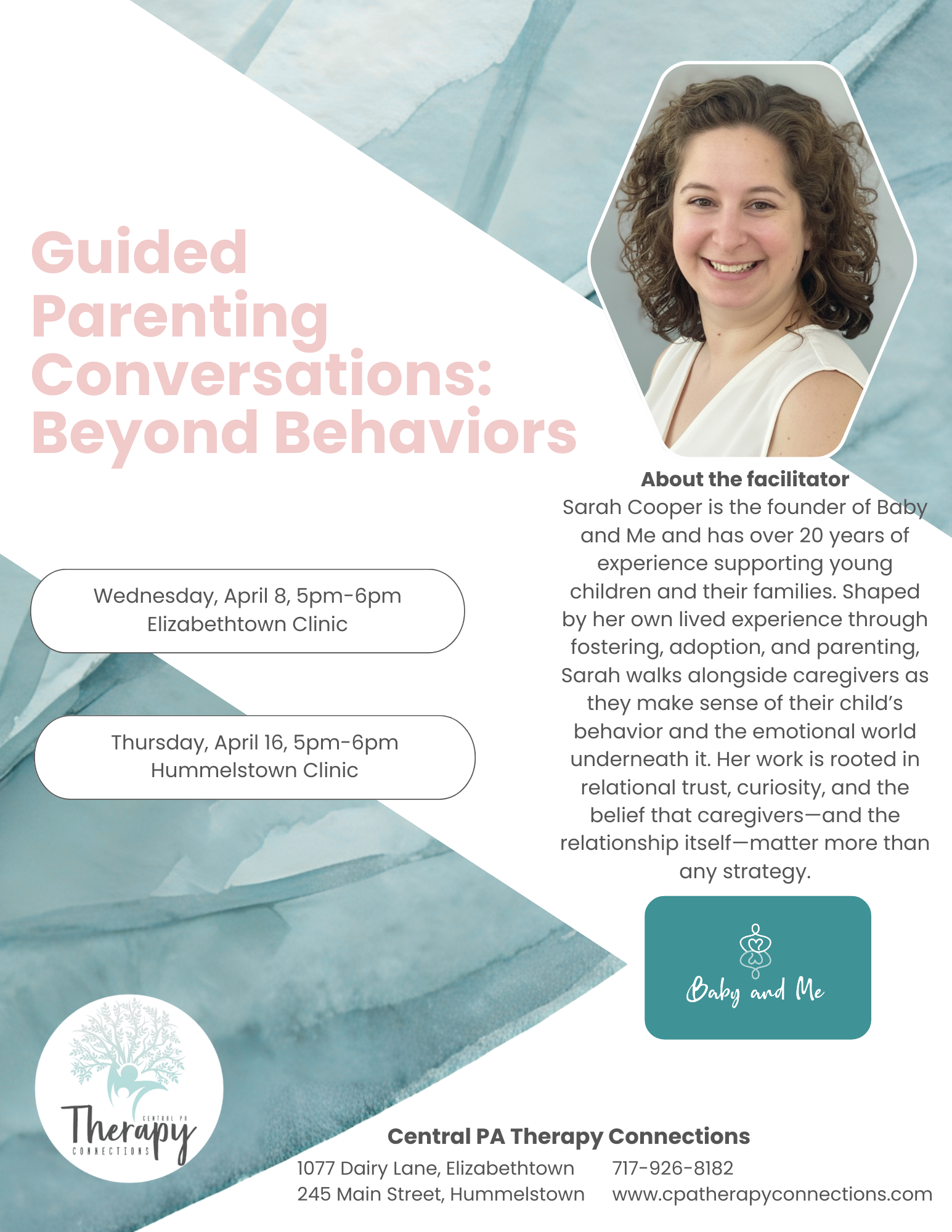 Led by Sarah Cooper of Baby and Me, this group supports parents in understanding their child’s behavior as communication, while also honoring the parent’s own experience in the relationship. Rather than focusing on strategies or fixing behavior, the emphasis is on understanding, connection, and the meaning being built between parent and child over time.